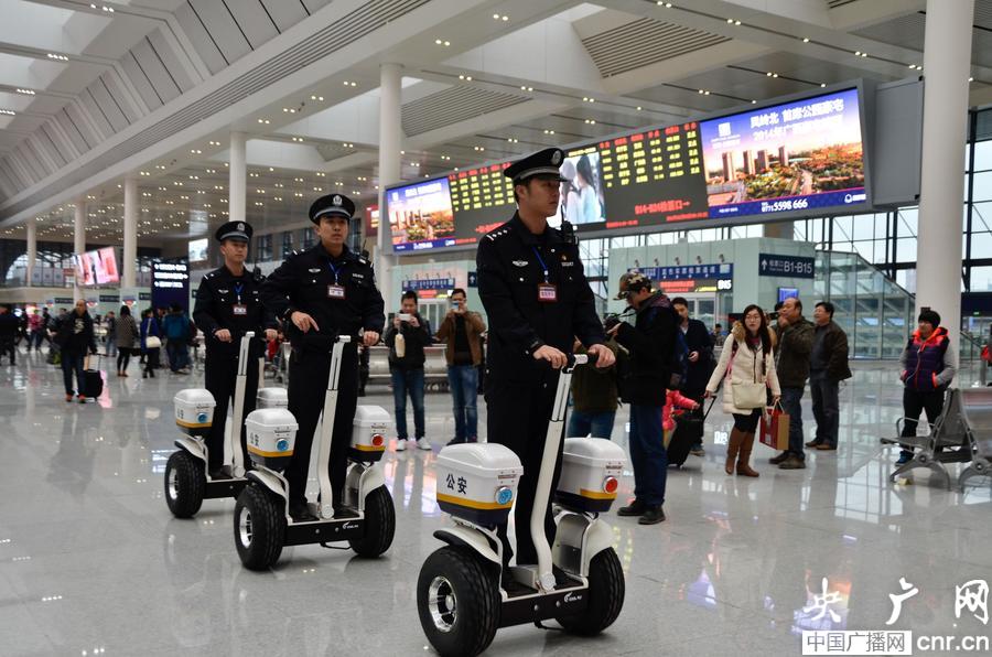 廣網(wǎng)南寧2月4日消息(記者 張壘 鄧君洋 通訊員 黨海華)2月4日是2015年春運(yùn)第一天,南寧鐵路公安處全警動(dòng)員,加大了站車巡邏密度,候車室、站臺(tái)、列車上隨處可見全附武裝的巡邏特警、執(zhí)勤民警。 因新啟用的南寧東站候車區(qū)域較大,公安處專門為南寧東站派出所配備了“智能單警”,以提高工作效率。