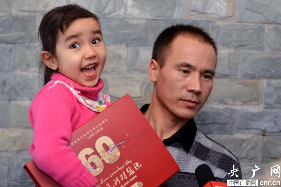 “敬業(yè)奉獻(xiàn)”道德模范、新疆克拉瑪依石油工人肉孜麥麥提和女兒分享快樂(央廣網(wǎng)記者 張雷 攝)