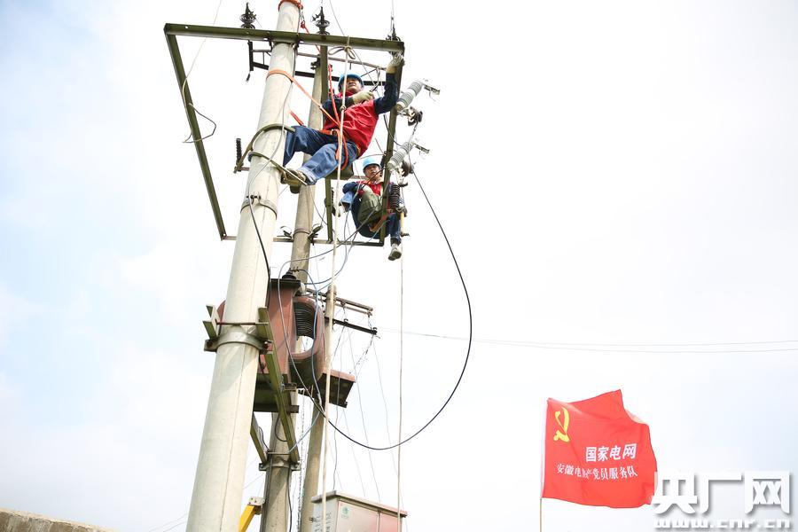 巢湖供電公司黨員服務(wù)隊(duì)員義務(wù)為當(dāng)?shù)厝罕娊鉀Q排灌用電困難(央廣網(wǎng)記者 劉軍 攝)