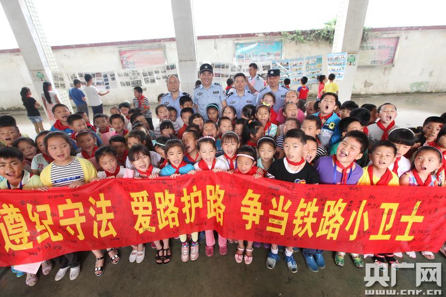 武漢鐵警入校園 送安全 慶“六一” 央廣網(wǎng)武漢6月1日消息(記者張毛清 攝影馮暢、田昊)為保障轄內(nèi)小學(xué)生們能夠度過(guò)一個(gè)平安愉快的節(jié)日,武漢鐵路公安處武昌東車站派出所民警深入轄區(qū)武漢東湖新技術(shù)開(kāi)發(fā)區(qū)花山小學(xué),為在校學(xué)生送上特殊的“節(jié)日禮物”。武漢鐵路公安處武昌東車站派出所民警,在“六一”兒童節(jié)放假前夕,深入到轄區(qū)武漢東湖新技術(shù)開(kāi)發(fā)區(qū)花山小學(xué),組織在校師生開(kāi)展了一場(chǎng)“鐵路安全進(jìn)校園”的主題宣傳活動(dòng);顒(dòng)中,武昌東車站派出所民警組織了“鐵警叔叔講掛圖”、“爭(zhēng)當(dāng)護(hù)路小衛(wèi)士”、“圖冊(cè)傳單認(rèn)真讀”、“鐵警叔叔面對(duì)面”、“鐵路安全我知道”、歡慶“六一”送祝福等多個(gè)活動(dòng)環(huán)節(jié),以民警講解鐵路安全知識(shí)掛圖、民警與師生在橫幅上聯(lián)名簽字、發(fā)放鐵路安全知識(shí)傳單圖冊(cè)、鐵路安全典型案例講解、鐵路安全知識(shí)有獎(jiǎng)競(jìng)答、發(fā)放宣傳紀(jì)念品等多種方式為500余名在校師生講解鐵路法律法規(guī),使在校小學(xué)生們進(jìn)一步了解鐵路安全法規(guī),增強(qiáng)鐵路安全意識(shí),爭(zhēng)做“愛(ài)路護(hù)路小衛(wèi)士”。此次宣傳活動(dòng)共為該校師生共發(fā)放安全宣傳傳單500余份、印有安全小常識(shí)的文具練習(xí)本100余份,“護(hù)路小衛(wèi)士”紀(jì)念品100余份等,為學(xué)生們送上“六一”祝福的同時(shí),也為他們送上了“平安”,活動(dòng)受到花山小學(xué)師生的一致好評(píng),起到了良好效果。 湖北站 張毛清 20150601 (央廣網(wǎng)記者 張毛清 攝)