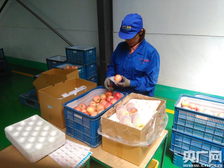 大連農(nóng)產(chǎn)品示范區(qū)鮮食蘋果今天首次出口美國 (央廣網(wǎng)記者 張四清 攝)