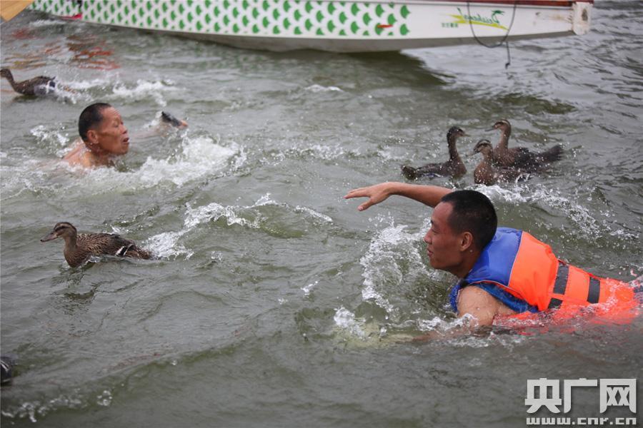 “搶鴨子”也是端午節(jié)重要民俗活動之一。?在之后進行的“搶鴨子”民俗活動中,活動組織者將事先準備好的活鴨放入江中,一聲令下后,參賽者們便從四面八方向鴨子撲去,一時間,水中搶鴨子熱火朝天,岸上加油聲此起彼伏,熱鬧非常。