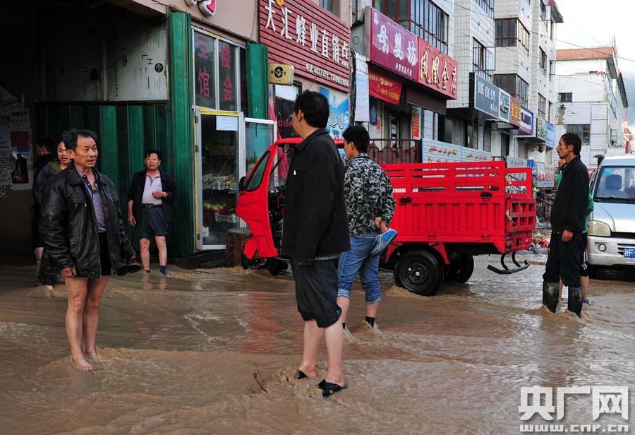 居民們看著被淹的商店一臉無奈(陳華林?jǐn)z)