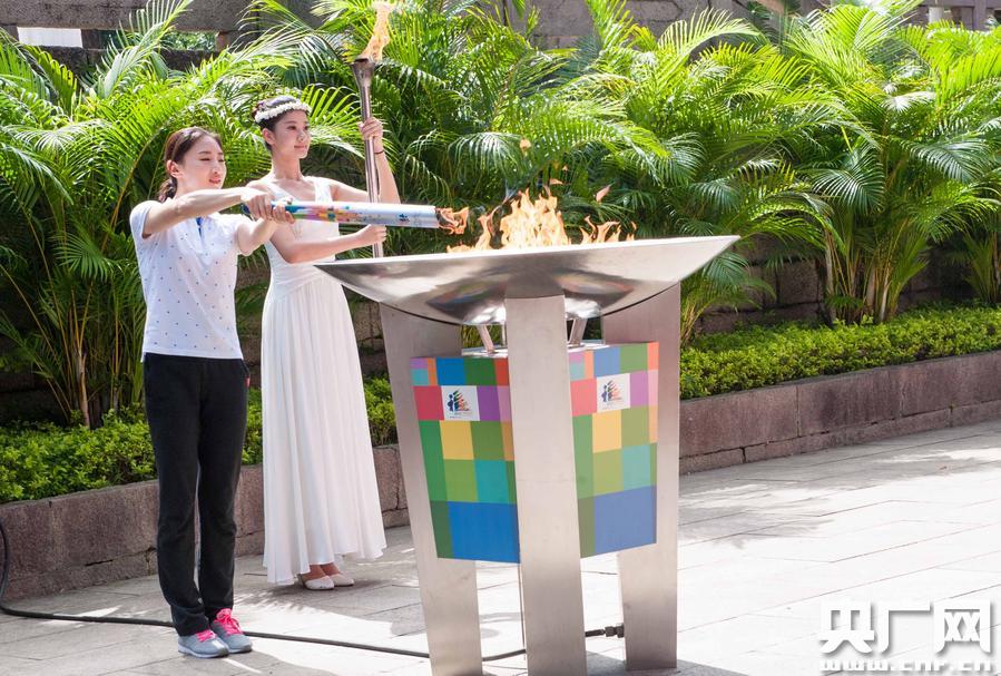 閩籍奧運(yùn)冠軍何雯娜入場,她手舉火炬上前,伸入圣火盆中,點(diǎn)燃了火炬,并向四周展示。場內(nèi)的LED大屏開始播放青運(yùn)會(huì)火炬?zhèn)鬟f視頻,視頻中萌萌的青運(yùn)會(huì)吉祥物“榕榕”手持火炬對觀眾表達(dá)著等待冠軍大哥哥或大姐姐來點(diǎn)燃火炬的期待和激動(dòng)心情,并伸出火炬,等待點(diǎn)燃。何雯娜來到LED大屏前,將火炬伸向屏幕方向,瞬間,屏幕上榕榕手中的火炬燃燒起來了,榕榕高舉火炬準(zhǔn)備開始在全國火炬?zhèn)鬟f的旅程。自此,持續(xù)3個(gè)月的全國火炬網(wǎng)絡(luò)傳遞在福州啟動(dòng)。