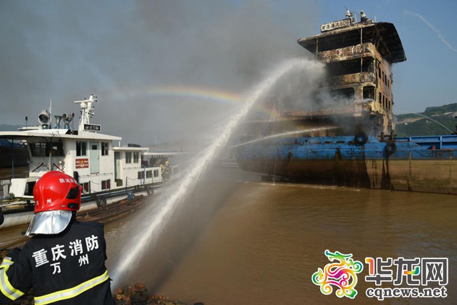 重慶萬(wàn)州一貨船突發(fā)大火燒成空架子 明火已撲滅無(wú)傷亡