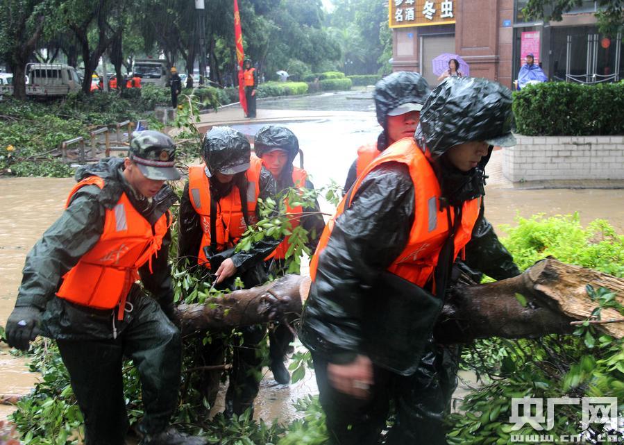 8月9日,武警官兵齊力搬走堵塞交通的樹木 (瞿尚川攝 央廣網(wǎng)發(fā))