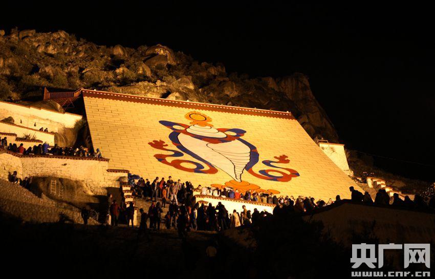 凌晨4時(shí),很多拉薩市民就已來到“拉薩三大寺”之一的哲蚌寺等待展佛 (央廣網(wǎng)記者 普布次仁 攝)