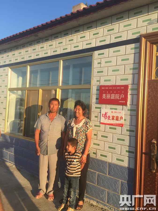 田玉霞和家人在自家小院合影(央廣網(wǎng)記者 韓曉 攝)