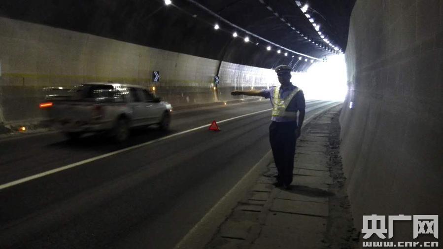 央廣網(wǎng)保山9月29日消息(記者李騰飛 通訊員張春蘭)9月27日中午12點40分,云南省保山市公安局交警支隊執(zhí)勤民警巡邏到杭瑞高速鎮(zhèn)安到潞江壩路段的鐵杉隧道口時,被突如其來的一幕嚇出冷汗:只見隧道口車道中間停著一輛黑色轎車,沒有擺放任何警示標志,左前輪甩出了一半。車旁站著一名男子,旁邊還跑著兩個七八歲的孩子。民警立即開啟危險警示燈,對現(xiàn)場進行救援。