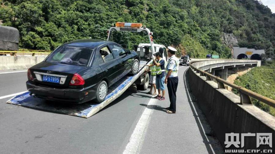 轎車高速隧道口剎車失靈 司機一家四口受驚嚇呆站一旁(央廣網(wǎng)發(fā) 李騰飛 攝)