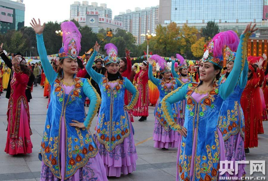 這場(chǎng)以“慶祝新疆維吾爾自治區(qū)成立60周年——‘愛(ài)祖國(guó) 愛(ài)新疆’”為主題的群眾文化活動(dòng),由來(lái)自烏魯木齊各縣市的3000多名各族群眾進(jìn)行現(xiàn)場(chǎng)表演,他們中有維吾爾族、漢族、哈薩克族、回族等多個(gè)民族的干部職工、農(nóng)牧民群眾和社區(qū)居民。伴隨豐富多彩的各民族群眾文化活動(dòng)展示,烏魯木齊人民廣場(chǎng)變成了歡樂(lè)的海洋。