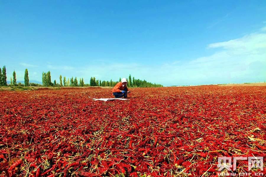 焉耆縣位于新疆天山中段南麓,是新疆重要的辣椒產(chǎn)地,今年辣椒種植面積達5.3萬畝,目前已全面進入采收期。由于焉耆縣氣候和土地等最適合種植辣椒,紅素含量高,目前豐收的辣椒,已吸引了山西、湖南等地的客戶。