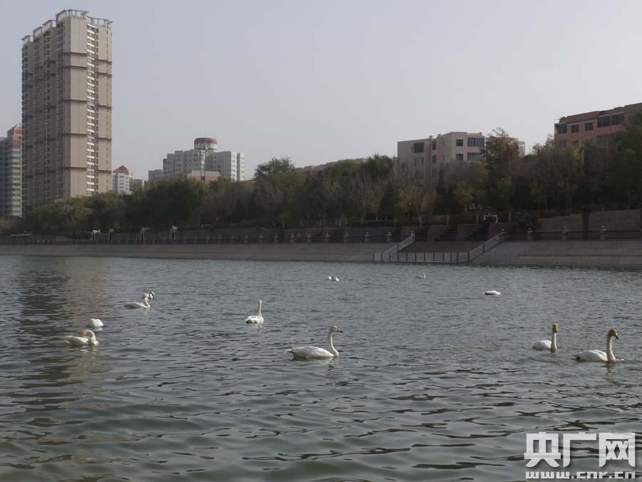 庫(kù)爾勒市孔雀河面上的天鵝
