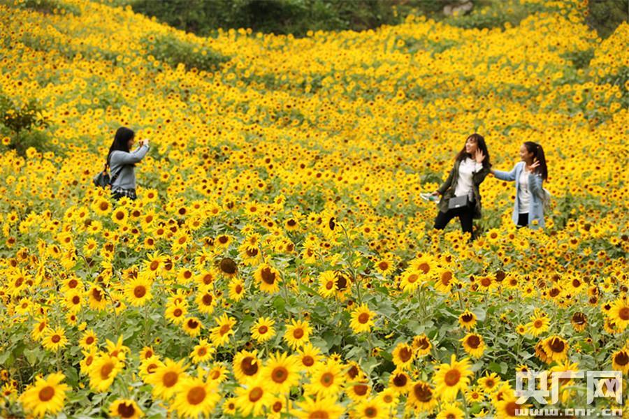 “我還是第一次親眼看到這種向日葵花,這么多花兒,漂亮極了!庇慰蛥菭N周末和家人一起來(lái)此體驗(yàn)鄉(xiāng)村生活,看著眼前的鮮花,吳燦興奮地說(shuō)。美麗的花海吸引了眾多游客拍照留影,大家拿著相機(jī)或手機(jī),置身于花海中擺出各種造型,徜徉忘返。而花谷中還配備有食宿一體的生態(tài)農(nóng)家庭院,賞花長(zhǎng)廊和水文景觀,可為游客帶來(lái)“美在其中”的別樣體驗(yàn)。