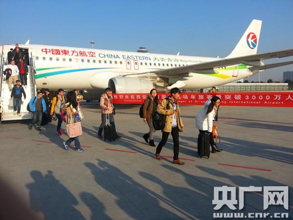 央廣網(wǎng)西安11月27日消息(記者劉濤2)11月27日上午9時35分,從上海飛來的MU2335航班穩(wěn)穩(wěn)降落在西安咸陽國際機場(以下簡稱“咸陽機場”),機上的旅客張偉幸運地成為咸陽機場今年的第3000萬名旅客,至此,咸陽機場成為國內(nèi)第八家年旅客吞吐量突破3000萬人次機場,一舉躍入“全球繁忙機場”行列。