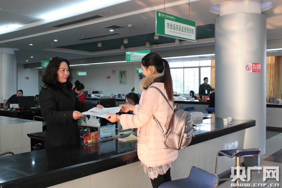 央廣網(wǎng)武漢1月18日消息(記者張毛清 鄂州臺記者廖靖飛 梁怡青 王芳)元月15日,在湖北省鄂州市政務(wù)服務(wù)大廳食品藥品審批窗口,鄂州市食品藥品監(jiān)督管理局向湖北良品鋪子食品有限公司鄂州竹林廣場一分店發(fā)出了該市第一張食品經(jīng)營許可證,這標志著實行食品流通許可證與餐飲服務(wù)許可證“兩證合一”的新版食品經(jīng)營許可證在鄂州市正式啟用。