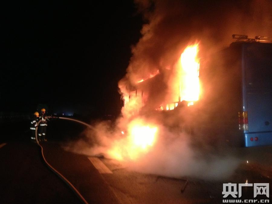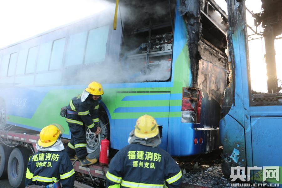 接警后,福州市消防指揮中心立即調(diào)集連江縣消防大隊鳳城中隊的兩部消防車和10名消防官兵,會同高速交警和路政部門趕到現(xiàn)場進行處置。到場時,兩輛車身標(biāo)有BRT字樣的公交車不同程度過火,其中一輛幾乎被大火吞噬,另一輛也已經(jīng)被引燃。截止當(dāng)日清晨7時30分許,明火被徹底撲滅。
