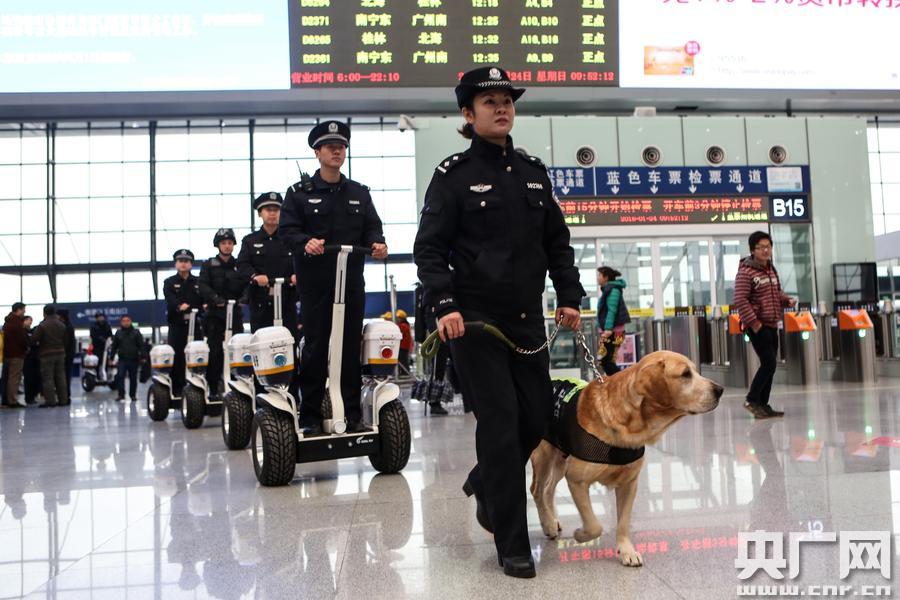 南寧鐵路公安處加強(qiáng)了安保(央廣網(wǎng)記者 張壘 攝)