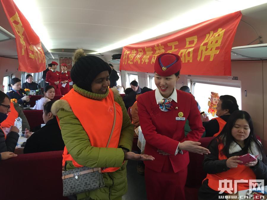 華中師范大學(xué)的留學(xué)生、來自斯里蘭卡的佳妮深有感觸的說:“中國的高鐵速度越來越快,服務(wù)越來越好了,在中國當(dāng)一名春運(yùn)志愿者,每當(dāng)旅客接受我的服務(wù),露出開心的笑容,我就會趕到很自豪。