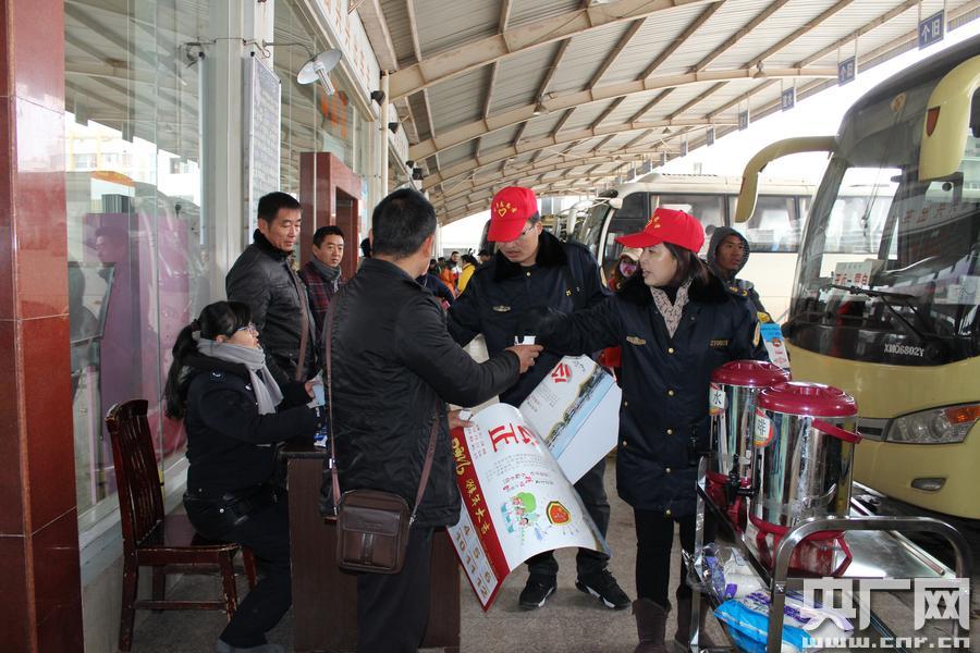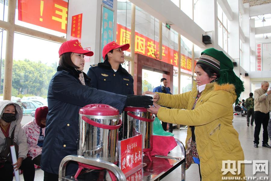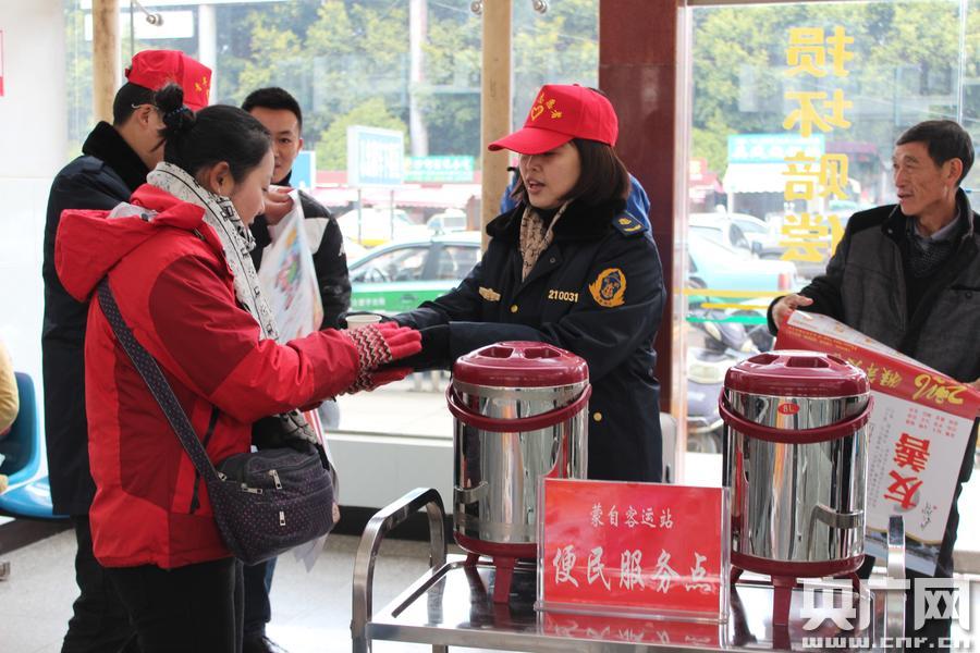 紅河州運管局人員為旅客遞上開水并贈送年歷