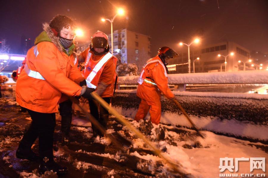 央廣網(wǎng)合肥2月1日消息(記者梁明星) 昨天(31日)早上開(kāi)始,鵝毛大雪不期而至。合肥市城管部門(mén)啟動(dòng)應(yīng)急掃雪除冰預(yù)案,緊急部署掃雪除冰工作。截至目前,全市城管系統(tǒng)共出動(dòng)7600余人、車(chē)輛機(jī)械設(shè)備3O9臺(tái)次、播灑融雪劑154噸,重點(diǎn)對(duì)市區(qū)主干道、人行道、人行天橋、人行下穿口、公交站臺(tái)等路段和部位進(jìn)行積雪清除。