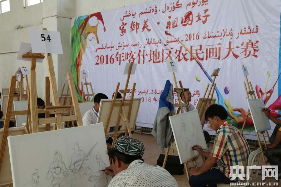 新疆喀什農(nóng)民畫大賽現(xiàn)場(chǎng)(央廣網(wǎng)記者 吳卓勝 攝)