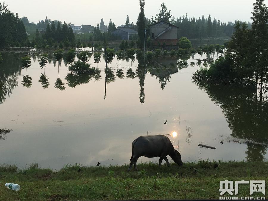 潰口合龍后,3500萬方潰漫到垸內(nèi)的漬水急需外排(央廣網(wǎng)記者 姜文婧 攝)