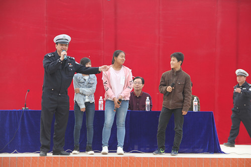 在講座過程中,桂平交警根據(jù)木根初中地處玉桂二級公路邊、路況復(fù)雜的現(xiàn)狀,深刻闡述提高交通安全防范意識的重要性,以近期本市某鎮(zhèn)初中三名學(xué)生的交通違法行為導(dǎo)致交通事故而身亡的慘痛案例為警示教訓(xùn),告誡廣大青少年學(xué)生要嚴守交通法規(guī),增強交通安全意識,努力做到文明出行和安全出行。桂平交警具體講解了目前轄區(qū)的道路交通安全形勢,深入分析了發(fā)生交通事故的原因及危害,向廣大師生講解如何做到安全步行,提醒出行騎自行車以及乘車的注意事項。在講座過程中,桂平交警還對道路交通安全常識進行普及,以有獎問答的形式調(diào)動學(xué)生參與交通安全知識學(xué)習(xí)的積極性。(注:圖片由廣西桂平市公安局交警大隊提供)
