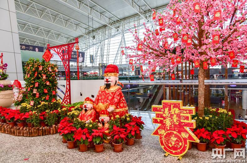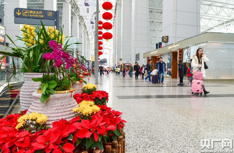 圍繞“廣州過年,花城看花”的主題,白云機場在航站樓內(nèi)外布置了南國特色的花卉景觀,營造出濃濃的廣州年的味道。從南進場路到航站樓兩側(cè),布置了4組立體花壇、130多株開花喬木和觀賞灌木,4萬多株鳳仙花等時令花卉,在機場迎來送往的主干道上營造出春暖花開、春色滿園的別樣風景。在航站樓內(nèi),更換紅掌、鳳梨、年花等時令花卉1000多盒、瑪麗安、彩虹竹芋、綠蘿等觀葉植物6000盆,整個航站樓內(nèi)姹紫嫣紅,廣大旅客在機場就可感受廣州的“花樣年華”。