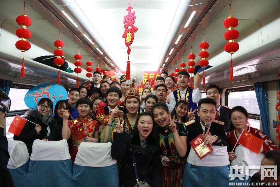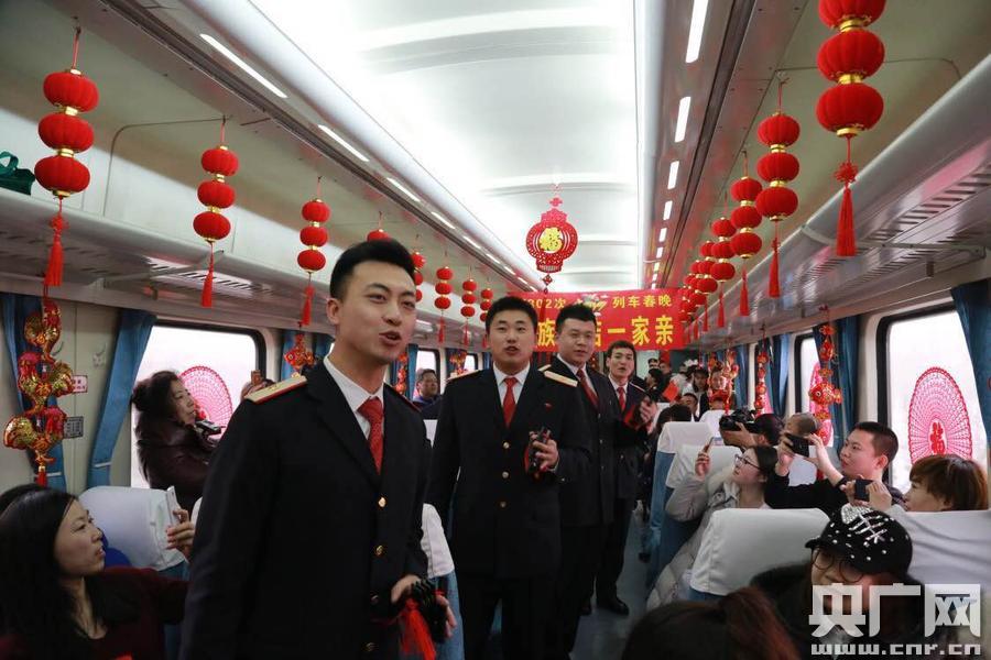 央廣網(wǎng)長春1月26日消息(記者 于中濤)26日,中國之聲《央廣新聞》和《直播中國》節(jié)目報(bào)道了長春開往烏魯木齊T302次列車舉辦“民族情唱響歡樂年”的列車春晚,該次列車邀請(qǐng)共建單位對(duì)口援疆學(xué)校長春希望高中的少數(shù)民族學(xué)生與列車乘務(wù)員共同為旅客獻(xiàn)上民族文化大餐。據(jù)了解,T302次列車是沈陽鐵路局東北進(jìn)入西北地區(qū)的首趟列車,這趟列車途經(jīng)吉林、遼寧、甘肅三個(gè)省份和內(nèi)蒙古、寧夏、新疆三個(gè)自治區(qū),47個(gè)少數(shù)民族地區(qū),全程運(yùn)行近56個(gè)小時(shí),600多名旅客要在列車上度過除夕。(央廣網(wǎng)記者 于中濤 攝) -