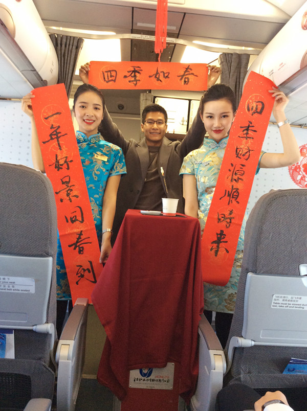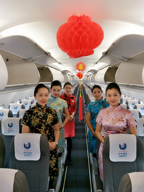 為了營(yíng)造歡樂(lè)喜慶的春節(jié)氛圍,讓旅客感受到回家般的溫暖,紅航客艙部在1月26日A67105昆明-南昌的航班上舉行了春節(jié)特別活動(dòng),客艙內(nèi)張貼了春聯(lián)和福字,并用中國(guó)結(jié)和燈籠進(jìn)行裝飾,充滿了濃厚的春節(jié)氣息,紅航女孩身穿充滿東方韻味的中國(guó)傳統(tǒng)服飾旗袍在客艙內(nèi)亮相,為旅客送上紅航飛機(jī)模型和鑰匙扣,表達(dá)對(duì)旅客滿滿的節(jié)日祝福,給當(dāng)天乘坐該航班的旅客帶來(lái)了歡樂(lè)與驚喜。