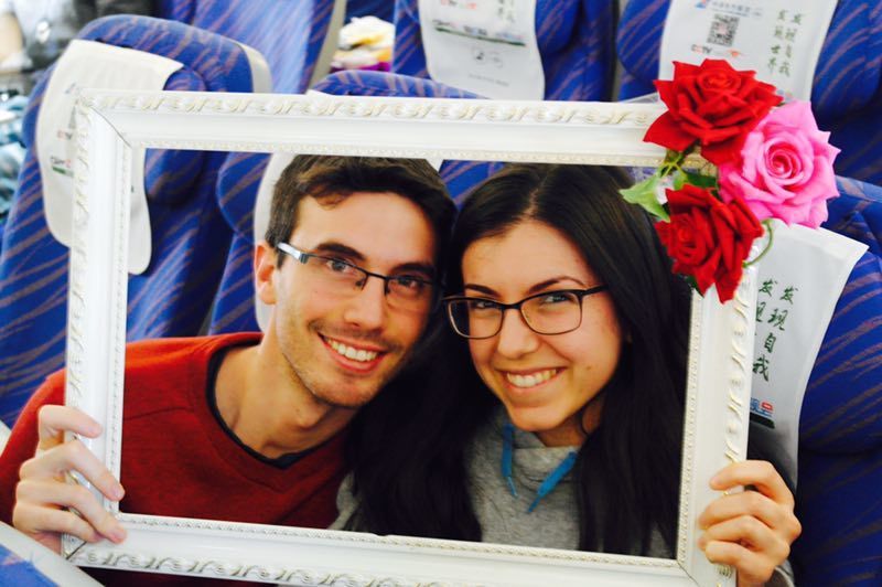 旅客在空中提前感受情人節(jié)