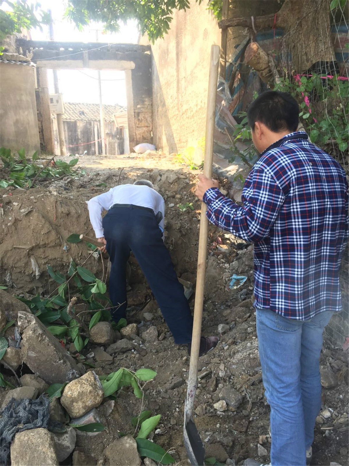 在清理河道兩邊環(huán)境衛(wèi)生時,得到村里老人的支持,有一位老者提供了重要線索,“小時候,他爺爺就常跟他講述樟林古港的故事”,老人來到新興街東門附近,說:“這里,可能就是當年的古碼頭,人們從這里登船,去過番。”