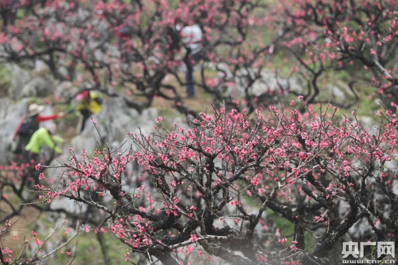 在桃林內(nèi),一大波珠三角市民捷足先登,看花海、聞花香。來自廣州的李端說,翁源的桃花真是別具一格,“這里的桃樹高大有型、桃花特別紅艷,加上生長在大石之間,遠遠看上去就像水墨畫一樣,這也正是本屆桃花節(jié)突出“水墨桃花·最憶翁源”的主題。