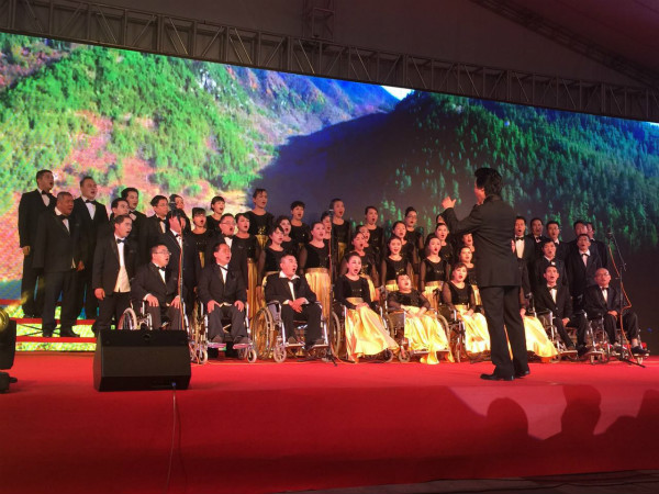 晚會現(xiàn)場,來自深圳市、區(qū)的殘障人士以合唱、舞蹈、詩朗誦、演奏、情景劇等藝術(shù)表現(xiàn)形式展現(xiàn)了他們身殘志堅、自強自立的精神風(fēng)貌。