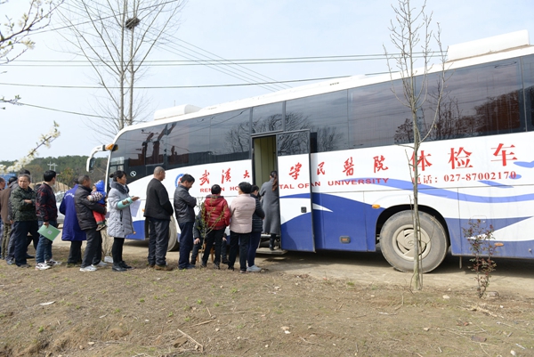 醫(yī)院開來的流動體檢車前,排起了數(shù)十米長的長龍。為了讓重達16噸、價值200萬的體檢車順利開進村里,村民們自發(fā)組織起來清除路障,挑高電線,挖平道路。54歲的王純英在丈夫和醫(yī)護人員的攙扶下,一步一步地挪上了體檢車。她已經(jīng)全身莫名疼痛5年多了。湖北省健康管理學(xué)會主任委員唐世琪懷疑她患有類風(fēng)濕性關(guān)節(jié)炎,便留下自己的聯(lián)系方式,囑咐她安排好家里的事情后,就到省城做個詳細檢查。