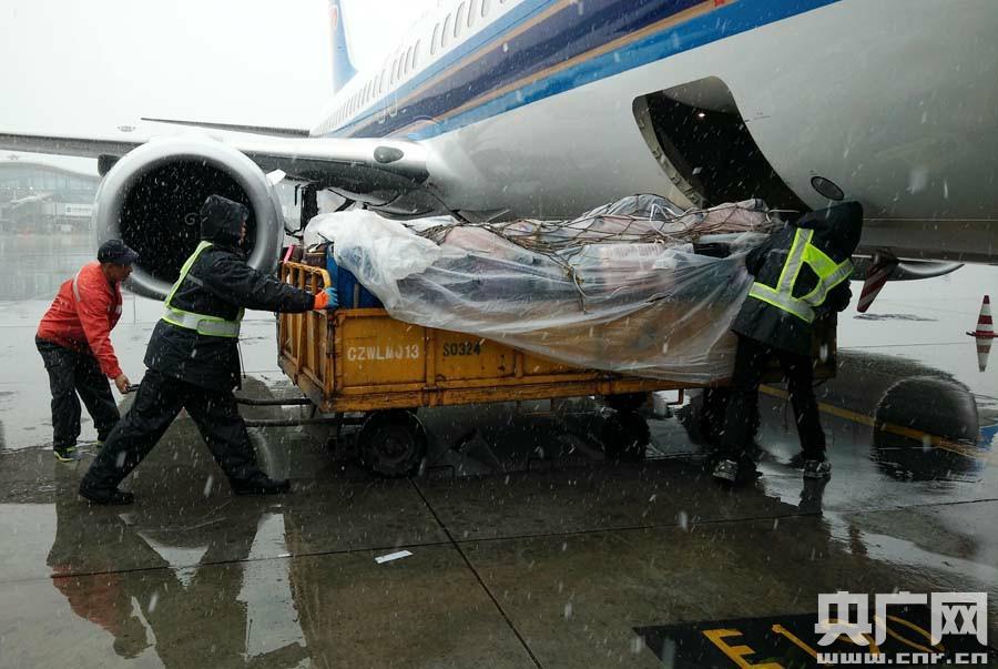 南航新疆各崗位員工雪中保障航班(任春山攝) 央廣網(wǎng)烏魯木齊4月4日消息(記者張雷 通訊員賀雯璟 任春山)今天是清明節(jié)小長假最后一天,烏魯木齊機(jī)場迎來雨雪,南航新疆分公司提前準(zhǔn)備,適時(shí)啟動(dòng)應(yīng)急保障預(yù)案,強(qiáng)化運(yùn)行保障安全措施,航班運(yùn)行平穩(wěn),當(dāng)日共保障進(jìn)出港航班170余班次,旅客1.8萬人次。 8時(shí)30分左右是飛機(jī)早出港高峰,前后1小時(shí)內(nèi)航班量近20架次,此時(shí)降雨天氣突然轉(zhuǎn)為降雪,給運(yùn)行保障帶來巨大壓力。由于南航運(yùn)行指揮部門已提前發(fā)布運(yùn)行提示,飛行部、飛機(jī)維修基地、貨運(yùn)部等各部門按部就班、保障有序,降雪并未對航班運(yùn)行造成太大影響,南航在烏部分出港航班經(jīng)過短暫排隊(duì)除冰后,均按時(shí)起飛。 -