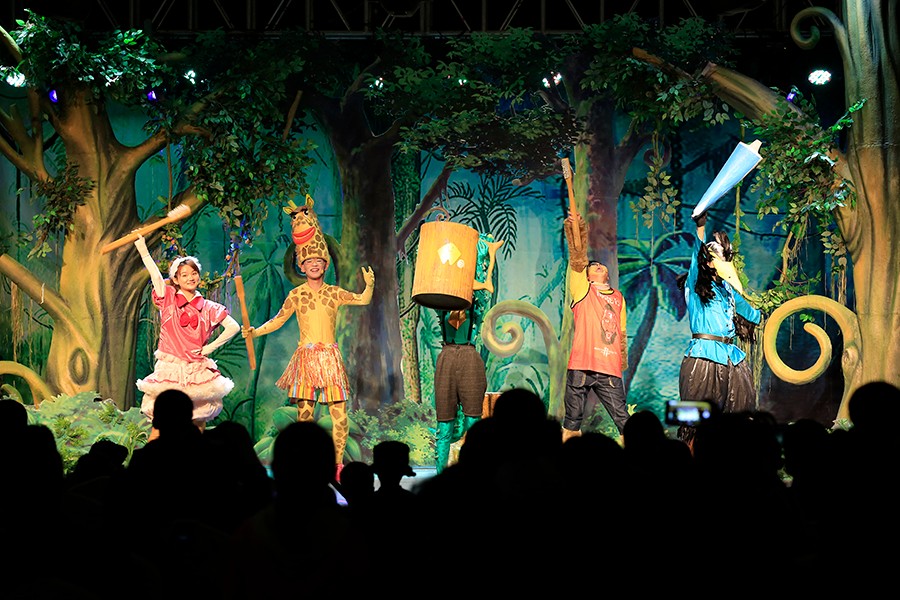 “神秘的非洲雨林里,一只愛吃糖的綠色鱷魚柯特牙齒壞了,卻還讓小動物們?yōu)樗姨鹗吵浴!彪S著優(yōu)美動聽的旁白聲響起,鱷魚柯特拔牙的故事在炫目的燈光下精彩上演,演員們扮演的各種動物形象生動、姿態(tài)逗人。舞臺下,小朋友們個個看得聚精會神,時而還跟隨著劇情傳來歡笑聲和掌聲。