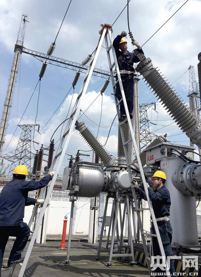 成都變電車間變電檢修工區(qū)職工正在進(jìn)行引下線馳度處理(央廣網(wǎng)發(fā) 蔣巧林?jǐn)z)