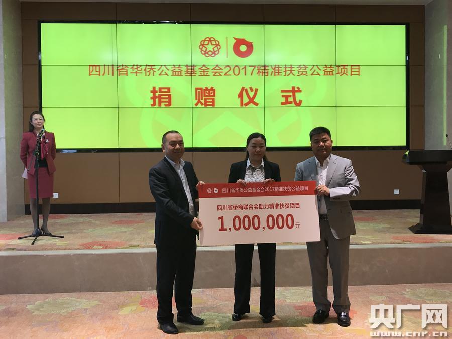 央廣網(wǎng)成都5月7日消息(記者韓民權(quán))5月7日,四川省華僑公益基金會2017精準(zhǔn)扶貧公益項目捐助儀式在蓉舉行,中國僑商聯(lián)合會副會長、四川省僑商聯(lián)合會會長薛水和先生代表商會向四川精準(zhǔn)扶貧專項捐贈100萬元,引導(dǎo)僑商僑企有序參與四川精準(zhǔn)扶貧事業(yè)。 中共四川省委副秘書長楊天宗表示,感謝海外僑胞、僑資企業(yè)對四川精準(zhǔn)扶貧工作的大力支持,希望海外僑胞在助力公益事業(yè)的同時,當(dāng)好促進四川經(jīng)濟轉(zhuǎn)型發(fā)展的“生力軍”,架起四川與世界經(jīng)濟合作共贏的“彩虹橋”,為四川企業(yè)走出去牽線搭橋,為四川與海外民間交流牽線搭橋,促進四川加快融入“一帶一路”建設(shè),不斷推動四川與世界友好合作關(guān)系取得更大進步。 -