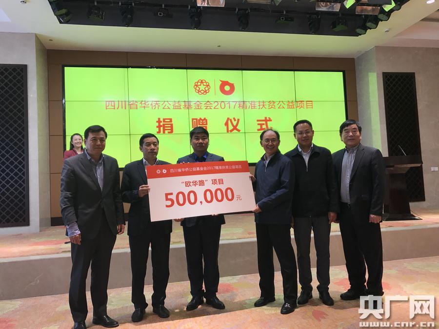 在捐贈儀式上,歐華聯(lián)會秘書長牟國量代表聯(lián)會全體會員向四川捐贈50萬元用于四川省僑聯(lián)幫扶點--瀘州市古藺縣永樂鎮(zhèn)西華村建設(shè)通組道路--“歐華路”!皻W華路”項目是四川省華僑公益基金會“僑愛心希望之路”的一部分,聚焦補短板,為政府主導(dǎo)的“村村通”架設(shè)“延長線”,打通“最后一公里”,助力當(dāng)?shù)禺a(chǎn)業(yè)發(fā)展和道路交通建設(shè)。 他介紹此次歐華聯(lián)合四川訪問團一行27人來川,成員來自10個國家,多為“一帶一路”沿線國家的僑領(lǐng)或僑商協(xié)會負責(zé)人,其中匈牙利華僑華人社團聯(lián)合總會會長余美明、斯洛伐克華人投資協(xié)會名譽會長甘普華等都曾多次來川考察,對四川充滿了感情。 -