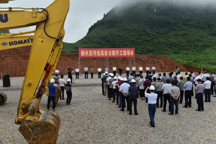 央廣網(wǎng)南寧6月29日消息(記者張壘 許大為 通訊員 蒙增師)6月28日,廣西柳州市融水縣至河池市高速公路項(xiàng)目開(kāi)工儀式在羅城仫佬族自治縣四把鎮(zhèn)新印村沖灣屯附近舉行。