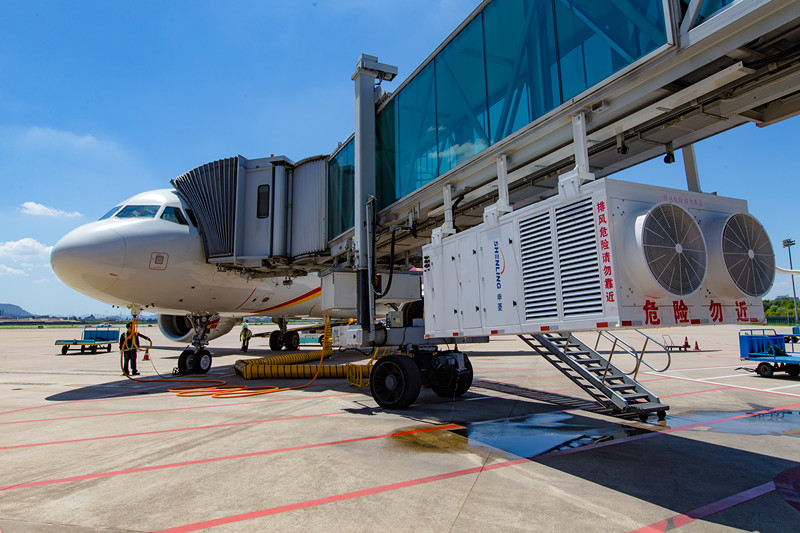 按照設(shè)計,登機橋配備了橋載空調(diào)和電源兩種設(shè)備后,橋載設(shè)備完全可以替代飛機輔助動力裝置(APU)的功能,實現(xiàn)利用電能向飛機提供各類服務(wù)保障,從而避免APU消耗航空煤油帶來的污染。