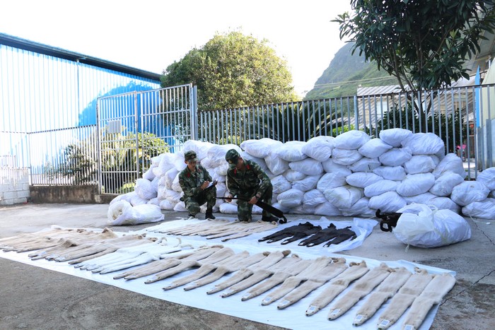該支隊(duì)獲得情報(bào)后成立專案組,在轄區(qū)展開(kāi)排查。其間,發(fā)現(xiàn)龍邦鎮(zhèn)一車輛裝載可疑涉私貨物,待其裝載完畢后,隨即追蹤該車。行駛中,該車從小路繞過(guò)邊防執(zhí)勤點(diǎn)和檢查站。歷經(jīng)兩個(gè)多小時(shí)追蹤后,專案組截停該車,當(dāng)場(chǎng)查獲無(wú)合法手續(xù)貂皮80多件5200多張。