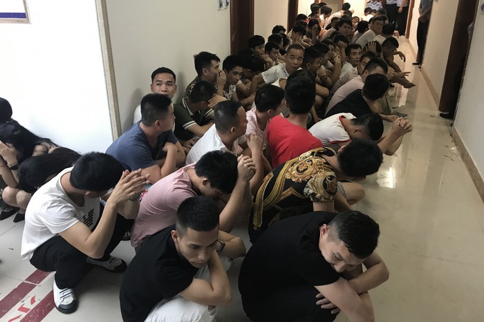 當(dāng)日凌晨,興業(yè)縣公安局禁毒大隊(duì)民警接到舉報稱:城區(qū)的“利和酒店東方皇宮俱樂部”包廂內(nèi)有多人吸食毒品。經(jīng)初查,該俱樂部4個包廂確有聚眾吸毒嫌疑,人數(shù)多達(dá)百人以上。上午10時許,50多名警力趕赴事發(fā)地,當(dāng)場將4個包廂的共130名涉毒人員(男100人,女30人)控制,并在各個包廂內(nèi)繳獲毒品可疑物K粉34小包共計(jì)24.92克、開心粉38小包凈重65.78克、冰毒4小包凈重8.84克、搖頭丸2粒凈重0.37克。經(jīng)現(xiàn)場對該130名青年男女進(jìn)行尿液檢測,其中有108人的尿檢結(jié)果呈氯胺酮及甲基苯丙胺陽性。