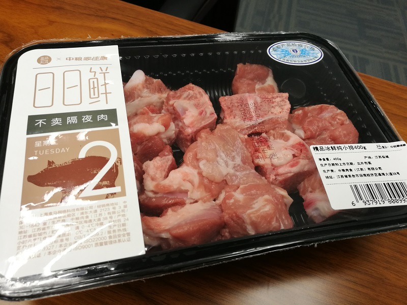 目前,在盒馬日日鮮的品牌下,綠葉菜、鮮豬肉已經(jīng)各達十幾種,冰鮮雞肉也已上架,還在不斷擴展鴨、鴿、鮮奶等新品類。無論商品的保質期是3天、5天還是7天,盒馬日日鮮均只做1天的售賣期。
