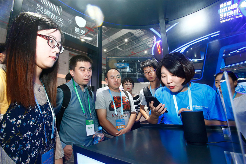網(wǎng)絡(luò)安全周開館沒多久,就有人群圍繞在一個狹窄的玻璃房外,好奇地觀望著智能機(jī)器人“天貓精靈”與交流者的對話。