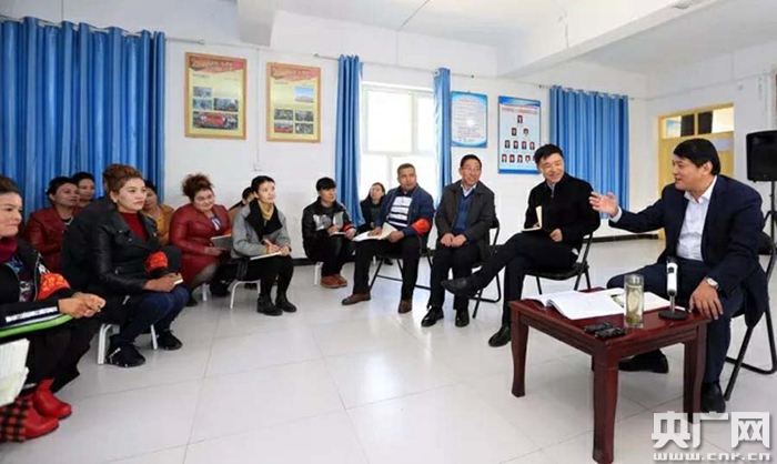 十九大代表、新疆喀什地委書(shū)記李寧平深入聯(lián)系村宣講黨的十九大精神(央廣網(wǎng)發(fā) 劉孟馨 攝)