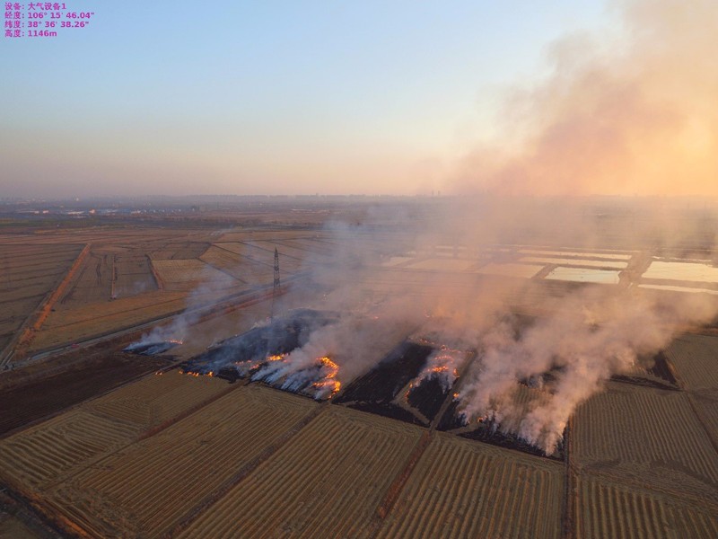 經(jīng)無人機(jī)對賀蘭縣習(xí)崗鎮(zhèn)黎明村其中一處(東經(jīng)106.15北緯39.49)火點(diǎn)進(jìn)行監(jiān)測,在高171米處,監(jiān)測可吸入顆粒物(PM10)濃度為6493μg/m3,細(xì)顆粒物(PM2.5)濃度為2850μg/m3,二氧化硫(SO2)濃度為244μg/m3,二氧化氮(NO2)濃度為691μg/m3,直接嚴(yán)重影響了環(huán)境空氣質(zhì)量改善。