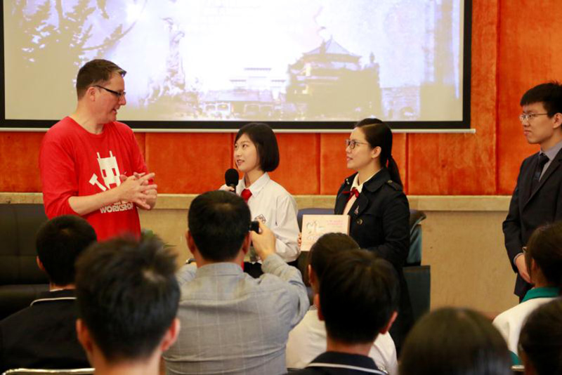 活動中,理查德·泰勒介紹了他的工作歷程和代表作品,分享了創(chuàng)作思想和團(tuán)隊(duì)理念,暢談了他是如何讓“奇跡”發(fā)生的。廣州學(xué)生、小記者代表們精心準(zhǔn)備了問題,圍繞著廣州城市發(fā)展、世界的未來與青年的未來、中國文化發(fā)掘、電影業(yè)及文化、科技創(chuàng)新發(fā)展等多樣性話題進(jìn)行交流互動;顒又,他一一詳細(xì)解答了同學(xué)們的提問,還不時和同學(xué)、老師、記者們開起玩笑,并穿上了執(zhí)信中學(xué)和天河外國語學(xué)校的校服,和同學(xué)們做起了有獎問答游戲,引得現(xiàn)場陣陣歡聲雷動。